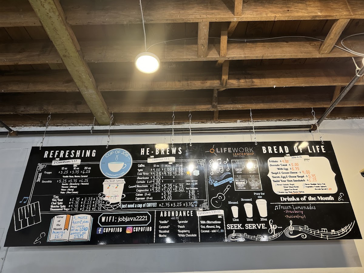 Welcome to Cup of Job, a charming café nestled in the heart of Jacksonville's Murray Hill neighborhood. This Biblically-themed coffee haven is not just a spot for a caffeine boost; it’s a delightful experience brimming with warmth, creativity, and community spirit. Whether you're stopping by for a quick coffee before work or settling in for a cozy chat with friends, Cup of Job offers an atmosphere that feels like home.